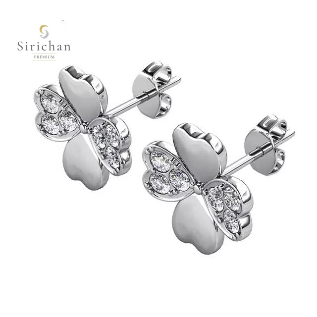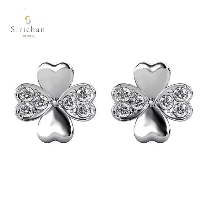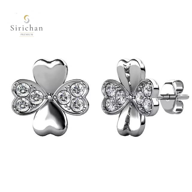 #เครื่องประดับมงคล #ต่างหูใบโคลเวอร์ #ต่างหู Luckly Four Leaf #Swarovski #Nickel Free Lead Free