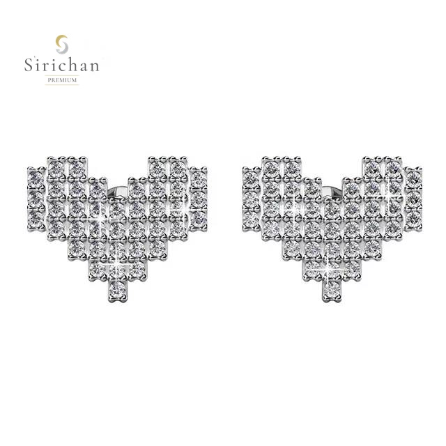 ต่างหูเพชรคริสตัล Swarovski Pixel Heart